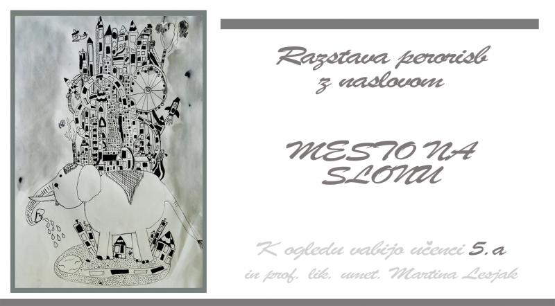 5. a razred vabi na ogled razstave perorisb z naslovom Mesto na slonu.