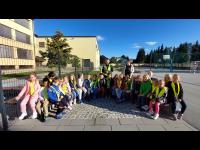 V prvem razredu nas je obiskala policistka, da nas seznani s prometno varnostjo. Naučili smo se pravilnega prečkanja cestišča, se naučili nekaj pravil primernega vedenja v prometu in si ogledali policijski avto.