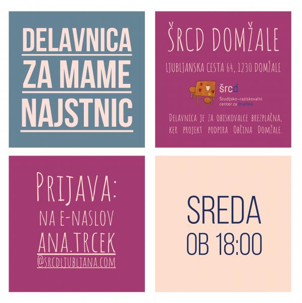 Delavnico omogoča Občina Domžale, zato je za udeleženke brezplačna.